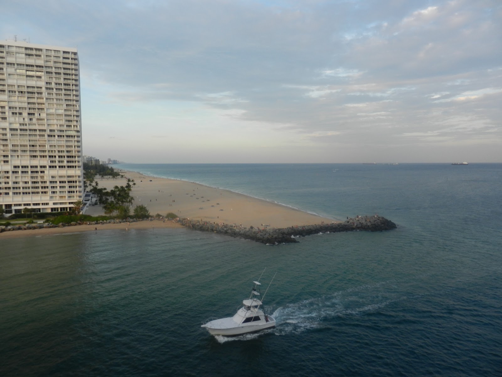 Nuestro brindis de apertura fue el camarote de unos amigos que tenían balcón. Eso me encantó. Ahí vimos cuando el barco zarpo y pudimos apreciar en detalle la costa de Ft. Lauderdale.