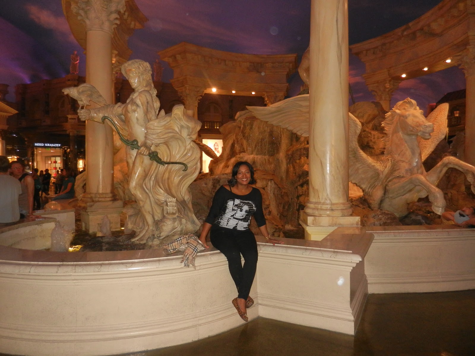 Luego tomamos el monoriel hacia el Flamingo, donde hicimos una parada para tomarnos nuestro primer trago en un barcito que da la terraza. Luego nos fuimos al Ceasar Palace, un hotel enorme e imponente, del cual nos impresiono su centro comercial. Ahi pasamos mucho tiempo viendo las tiendas.
